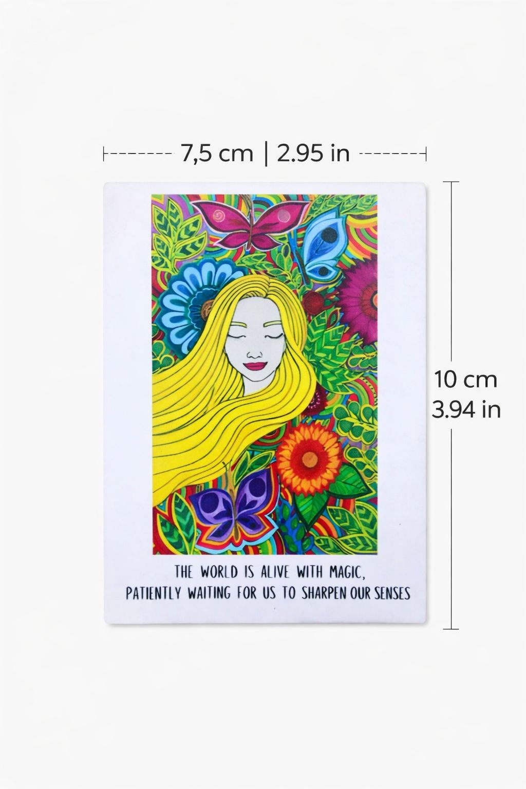 Measuring 7.5 cm x 10 cm (2.95 x 3.94 inches), this magnet fits perfectly into your daily environment. Place it on your fridge, workspace, or any magnetic surface where you want to invite more presence and awareness into your day.