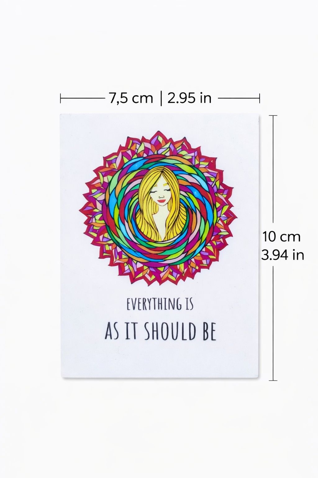 With a size of 7.5 cm x 10 cm (2.95 x 3.94 inches), this magnet fits beautifully into your daily environment. You can place it on your fridge, workspace, or any magnetic surface where you need a reminder to slow down and trust.