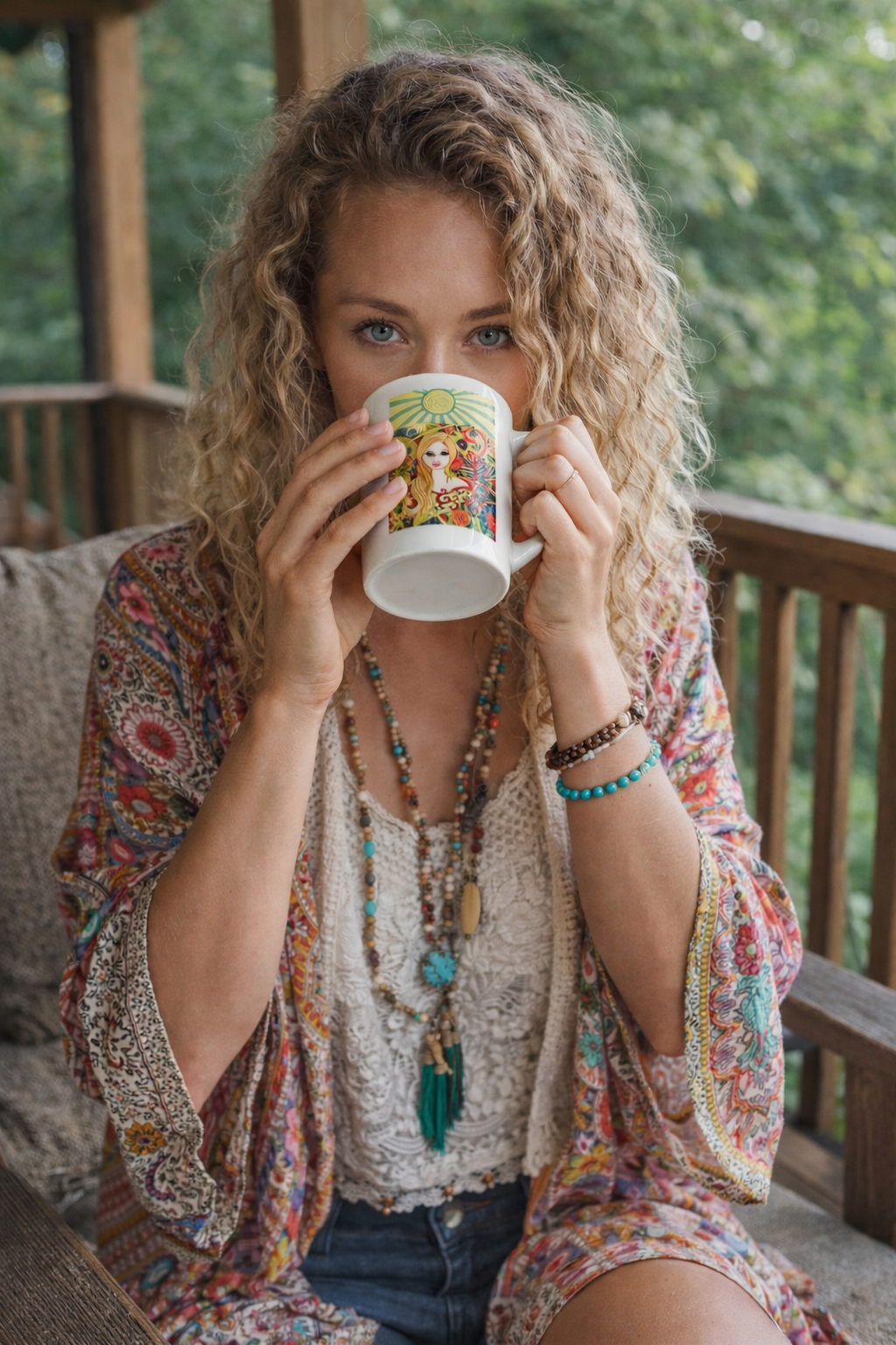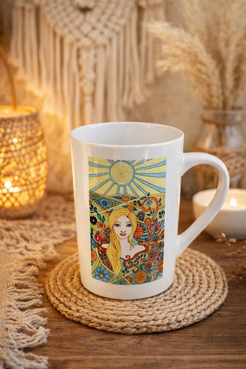 Designed for slow mornings and mindful evenings, this tall ceramic coffee and tea mug brings warmth, calm, and quiet confidence into your daily rituals. At the same time, its refined vertical silhouette allows the artwork and message to remain beautifully visible. Because of this thoughtful design, the mug becomes both practical and meaningful in everyday use.
